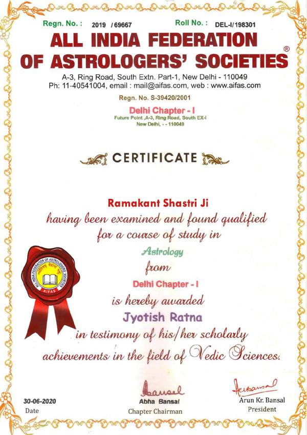 “Famous Astrologer Ramakant Shastri Ji for helping me to resolve the most challenging situation in my business. The best astrological solution you offered for growing my business was the one I needed.”